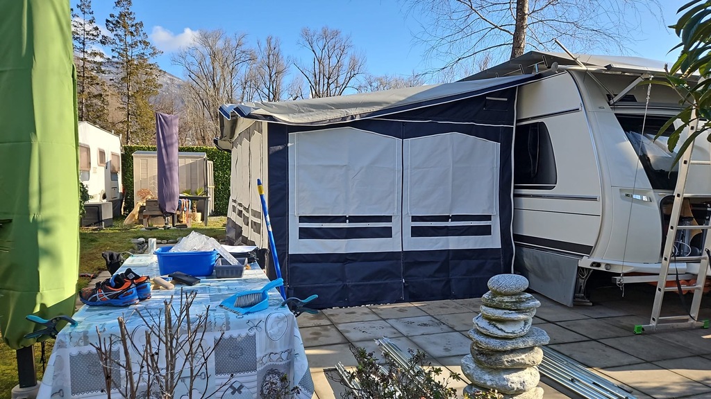 -Aufstellen von Wohnwagen / Vorzelten gerne auf dem Camping Delta, Locarno