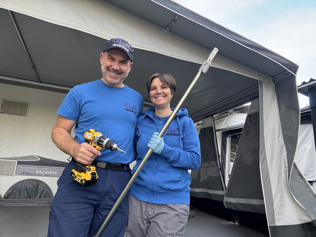 In der heutigen, schnelllebigen Zeit, in der keiner mehr Zeit für Andere findet, ist es schwierig, die richtige Unterstützung zu finden. Das wurde uns erstmals bewusst, als ein älteres Ehepaar uns um Hilfe beim Aufbau eines Vorzeltes sowie mit Anpassungen des Bodens bat. Wer könnte damit beauftragt werden? Dazu braucht es keinen Schreiner, Zimmermann oder Metallbauer, aber doch ohne handwerkliche Kenntnisse geht dies nicht.